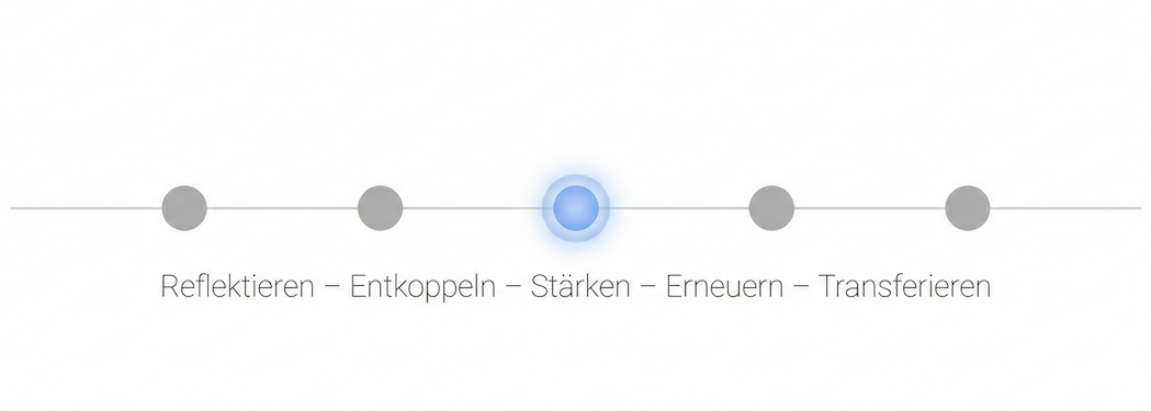 RESET ist ein klarer 5-Phasen-Prozess, der Alarmmuster entkoppelt und Stabilität aufbaut.